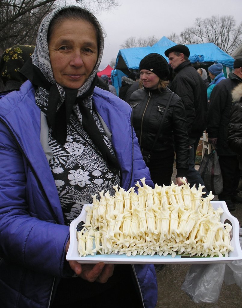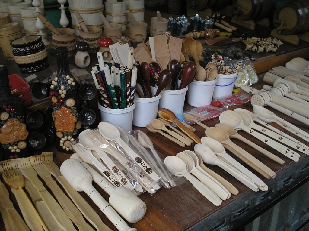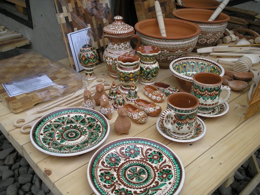 Дерев'яні різьблені тарілки, шкатулки, підсвічники, годинники і шахи, розписаний керамічний посуд, кумедні скульптурки, вишиті сорочки і рушники, ткані килими і накидки, пухнасті ліжники й подушки, жіночі прикраси, писанки, вироби з металу, шкіряні сумки і паски, вироби з лози, і навіть їстивні сирні іграшки!