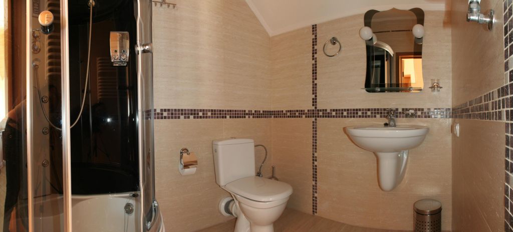 Двохспальний розкладний диван, односпальне ліжко, столик, стільці, шафа для одягу, комод, телевізор, санвузол (умивальник, гідромасажний бокс, туалет, сушарка для рушників).